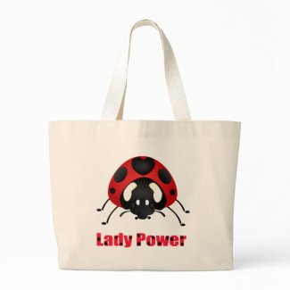 A larger-than-life ladybug with a spotted slogan adorns this cute "Lady Power" tote bag from Spiderwebs!